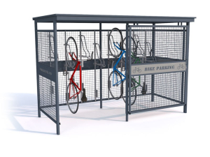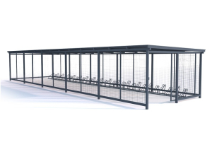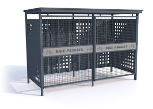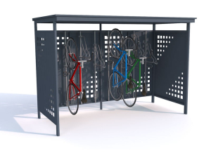Moderne og slitesterke sykkellskur kombinerer funksjonalitet, høy kvalitet og stor grad av tilpasning. Skurene våre kan også leveres komplett med førsteklasses sykkelstativer med f.eks. løftefunksjon som gir enkel håndtering og optimal utnyttelse av plassen. Med plass til alt fra 5 til 25 sykler i vertikale stativer utnyttes arealet effektivt, samtidig som syklene står tørt, luftig og godt beskyttet mot vær, vind og tyveri.