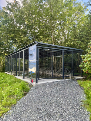 Det er også mulig å personalisere skuret med egen grafikk eller tekst, noe som gjør det velegnet for bedrifter, borettslag, skoler og offentlige aktører som ønsker et tydelig og helhetlig uttrykk.