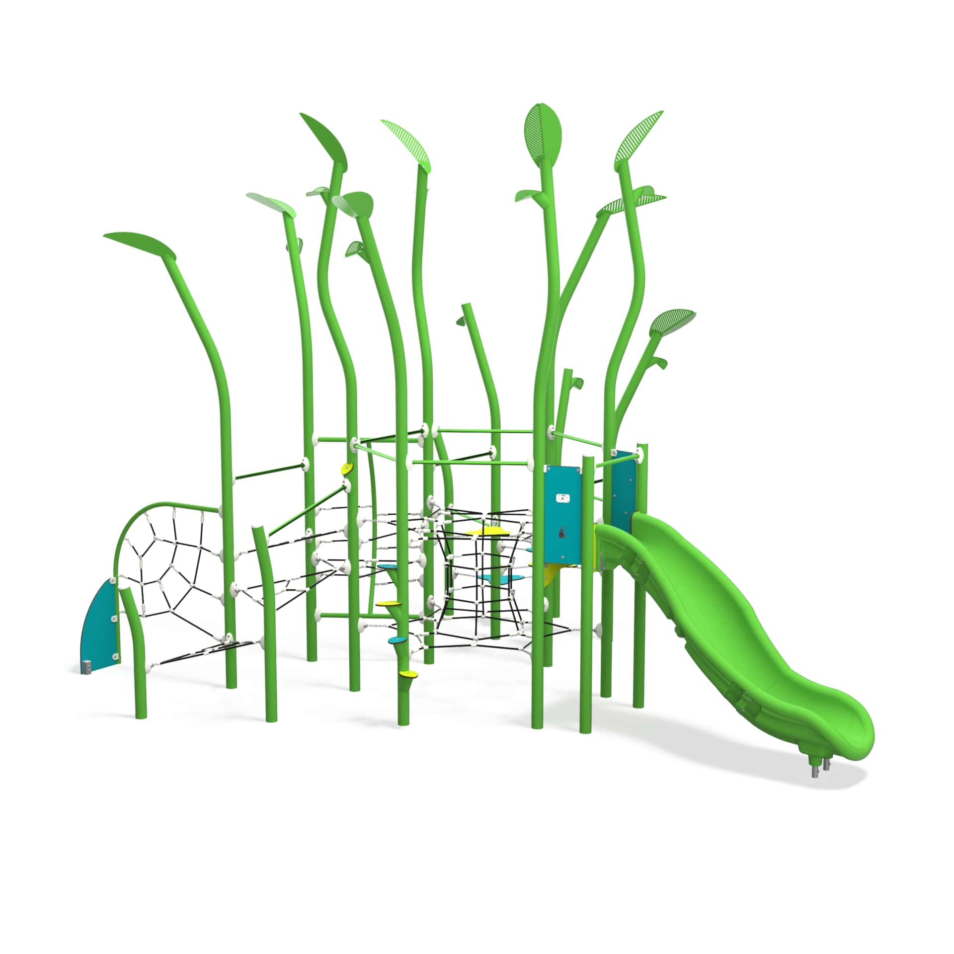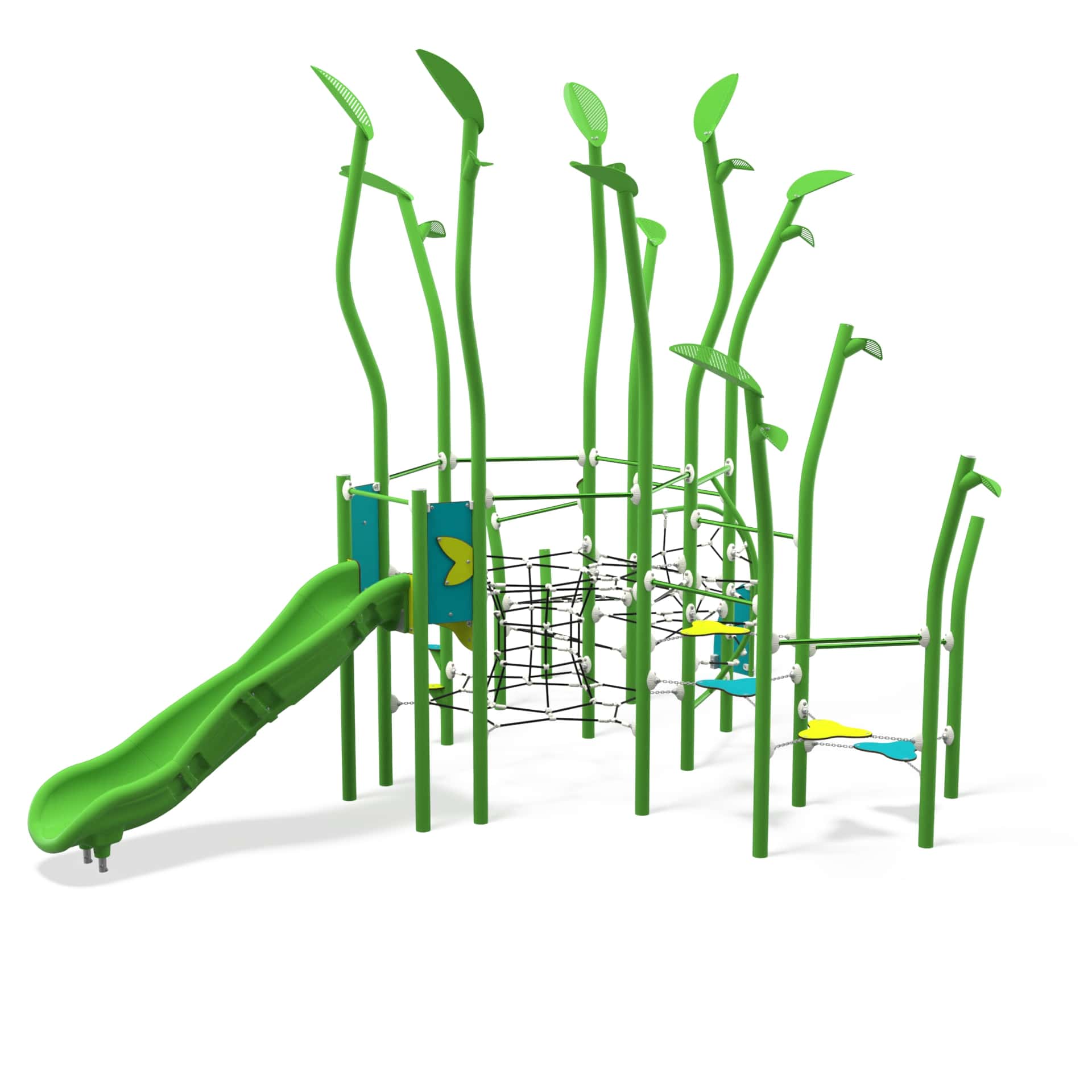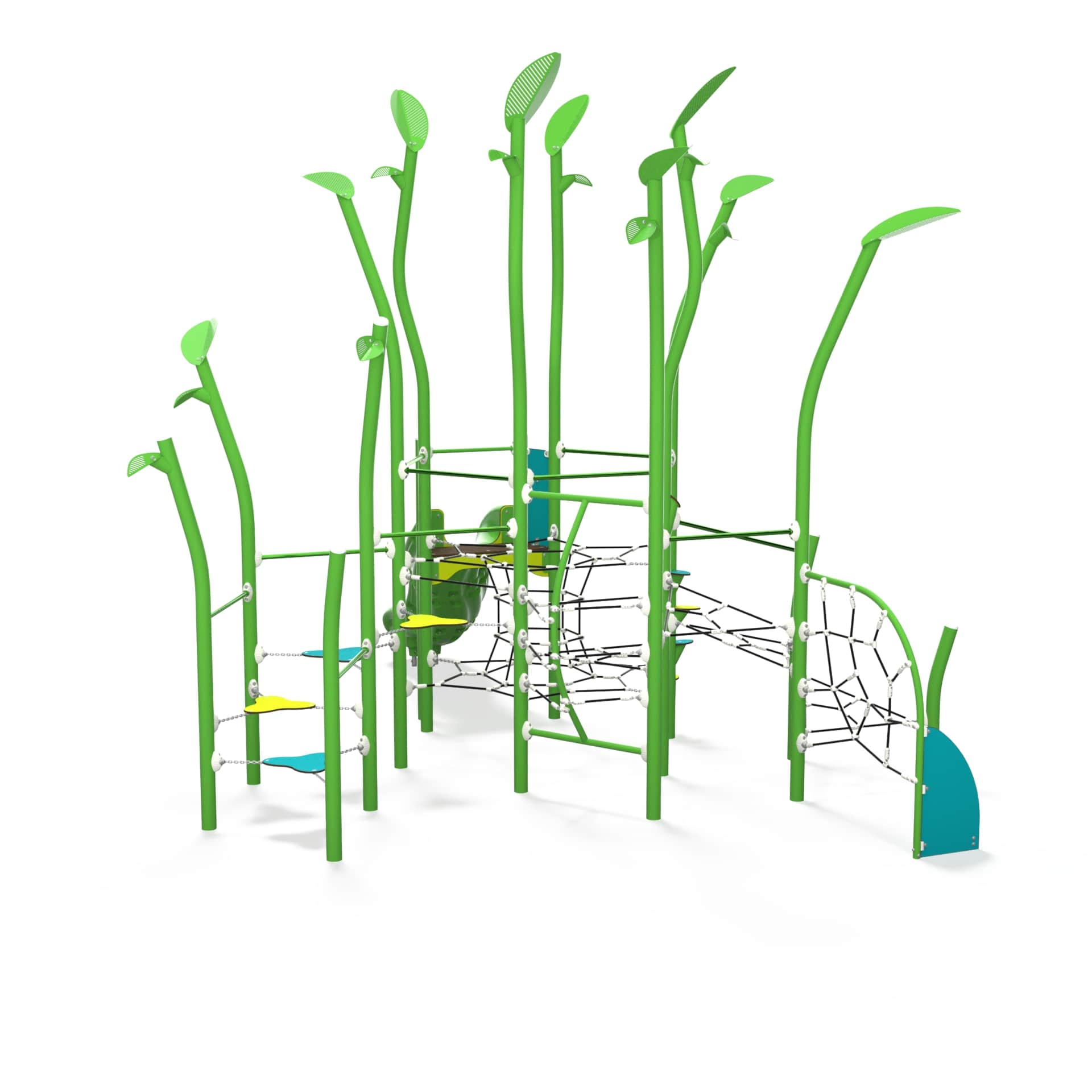 Skogkatedralen er en stor og robust del av NATURA serien, designet for intensiv bruk i offentlige lekeplasser. Med en kapasitet på 37 samtidige barn og et sikkerhetsareal på ~50 m², tilbyr apparatet en variert kombinasjon av klatring, balanse og klatrenett, bygget rundt solide metallstrukturer og organiske linjer inspirert av naturen.