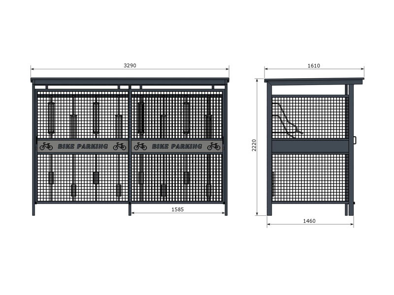 Sykkelskur Tara I er en lukket og solid sykkelgarasje utviklet for trygg og funksjonell sykkelparkering i både offentlige og private miljøer. Med plass til 8 sykler i vertikale stativer utnyttes arealet effektivt, samtidig som syklene står tørt, luftig og godt beskyttet mot vær, vind og tyveri.