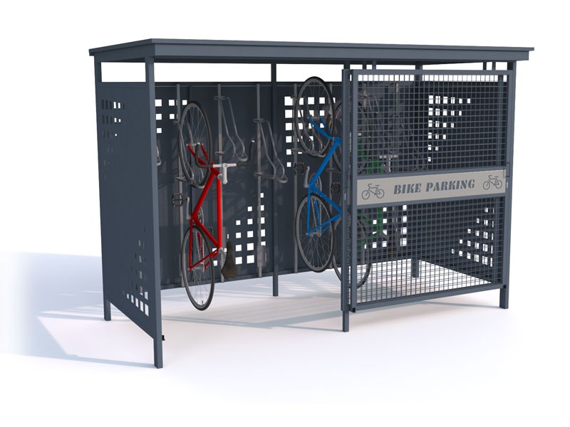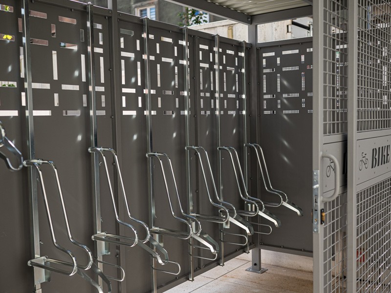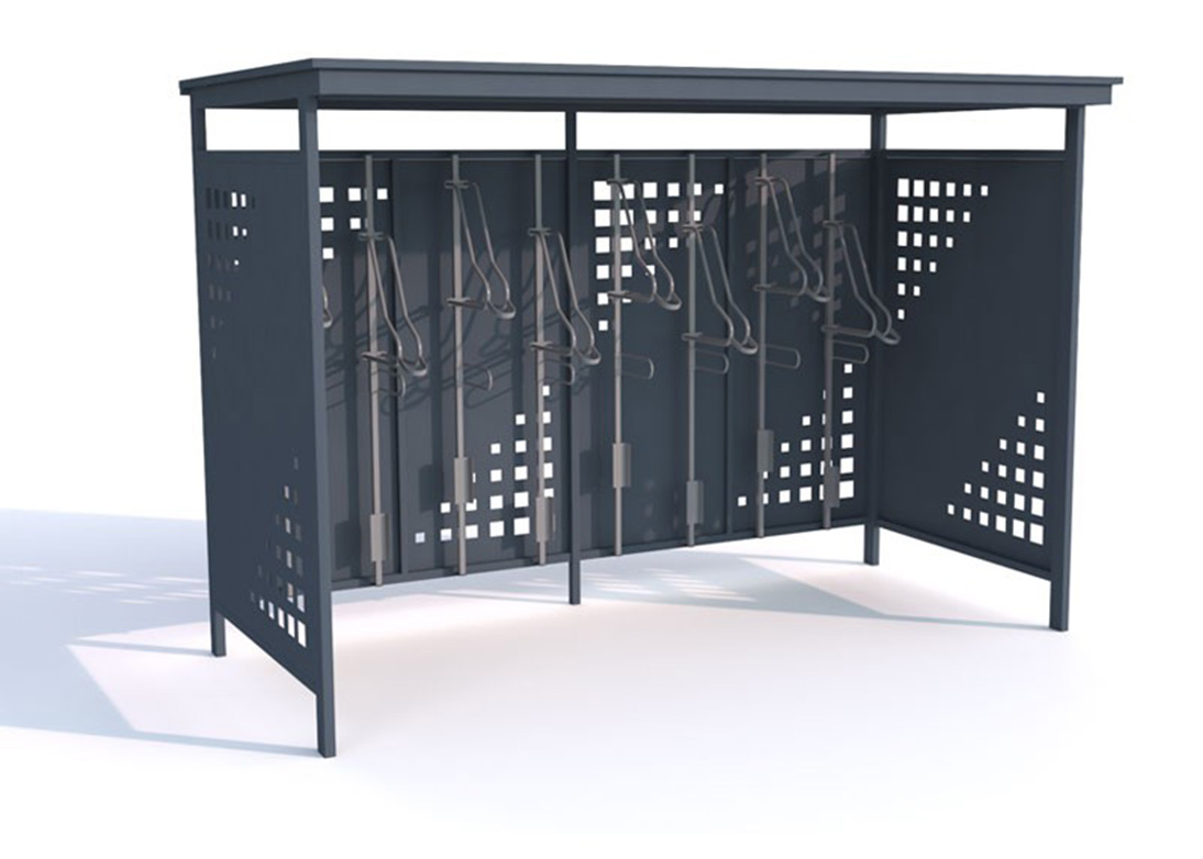 Tara II sykkelskur er et moderne og slitesterkt sykkellskur som kombinerer funksjonalitet, høy kvalitet og stor grad av tilpasning. Løsningen er utviklet for offentlige rom, borettslag, næringsbygg og institusjoner som stiller høye krav til både estetikk og holdbarhet. Skuret leveres komplett med førsteklasses sykkelstativer med løftefunksjon, Lift-1 Premium, som gir enkel håndtering og optimal utnyttelse av plassen. Med plass til 8 sykler i vertikale stativer utnyttes arealet effektivt, samtidig som syklene står tørt, luftig og godt beskyttet mot vær, vind og tyveri.