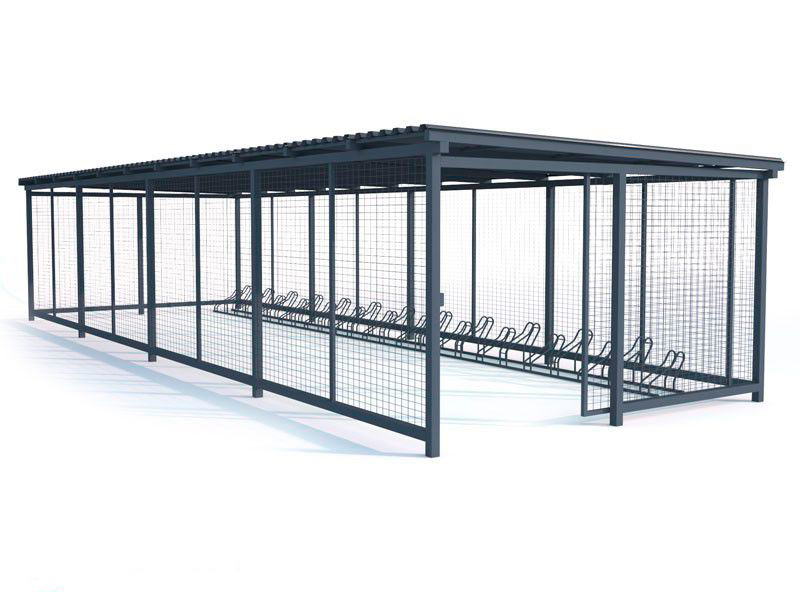 Sykkelskur Pablo ll med plass for 20 sykler. Et moderne design. Kan leveres i flere farger og rustfritt stål.