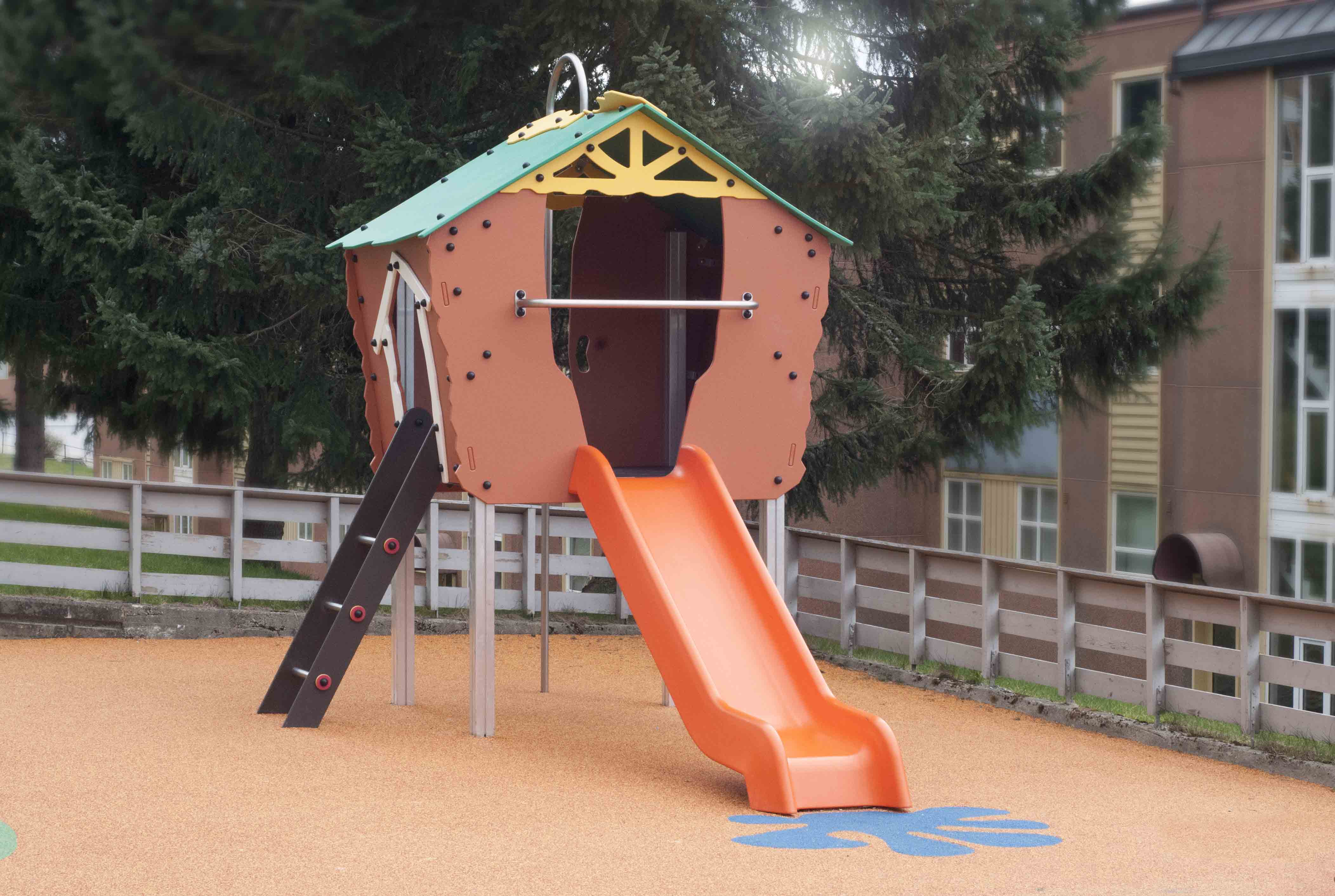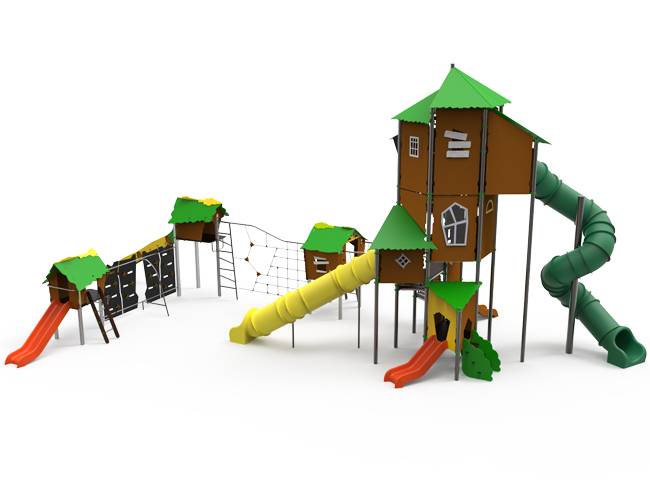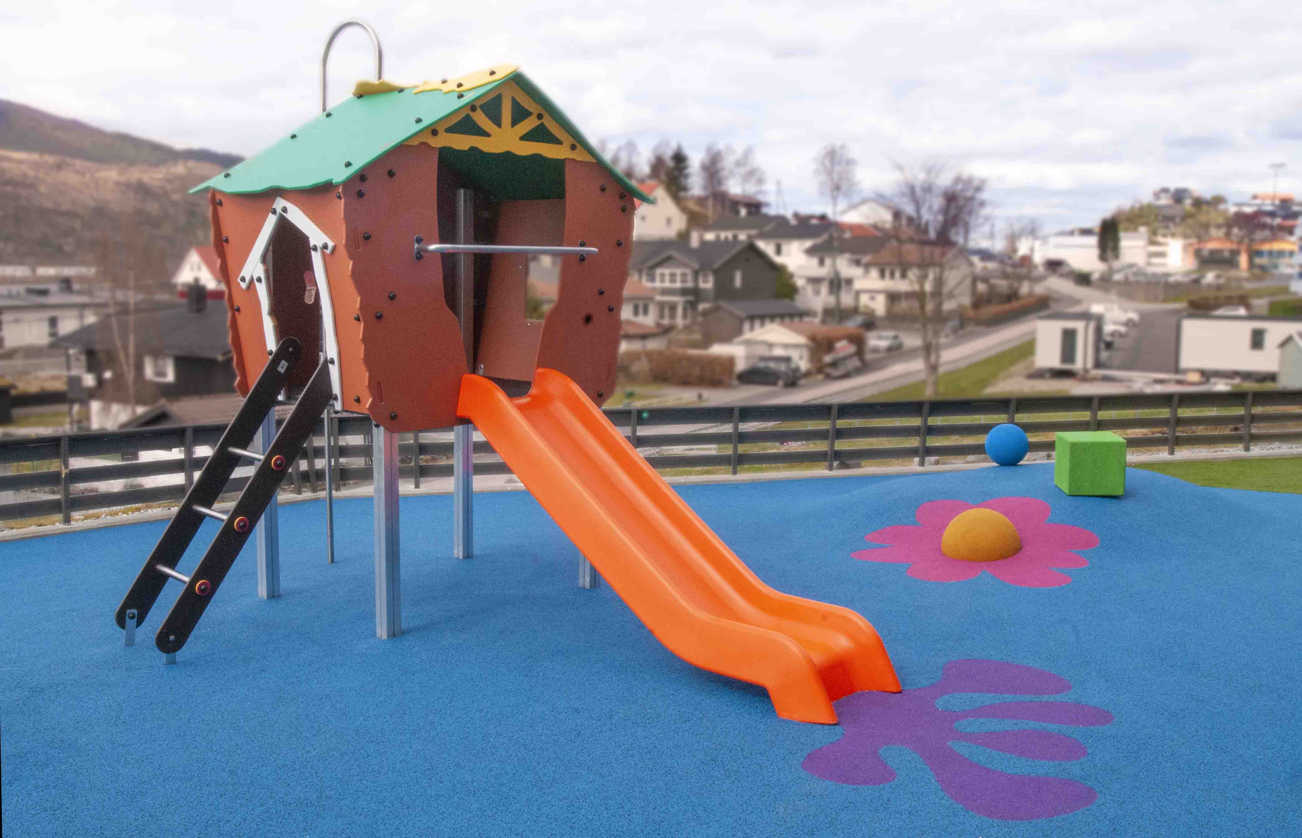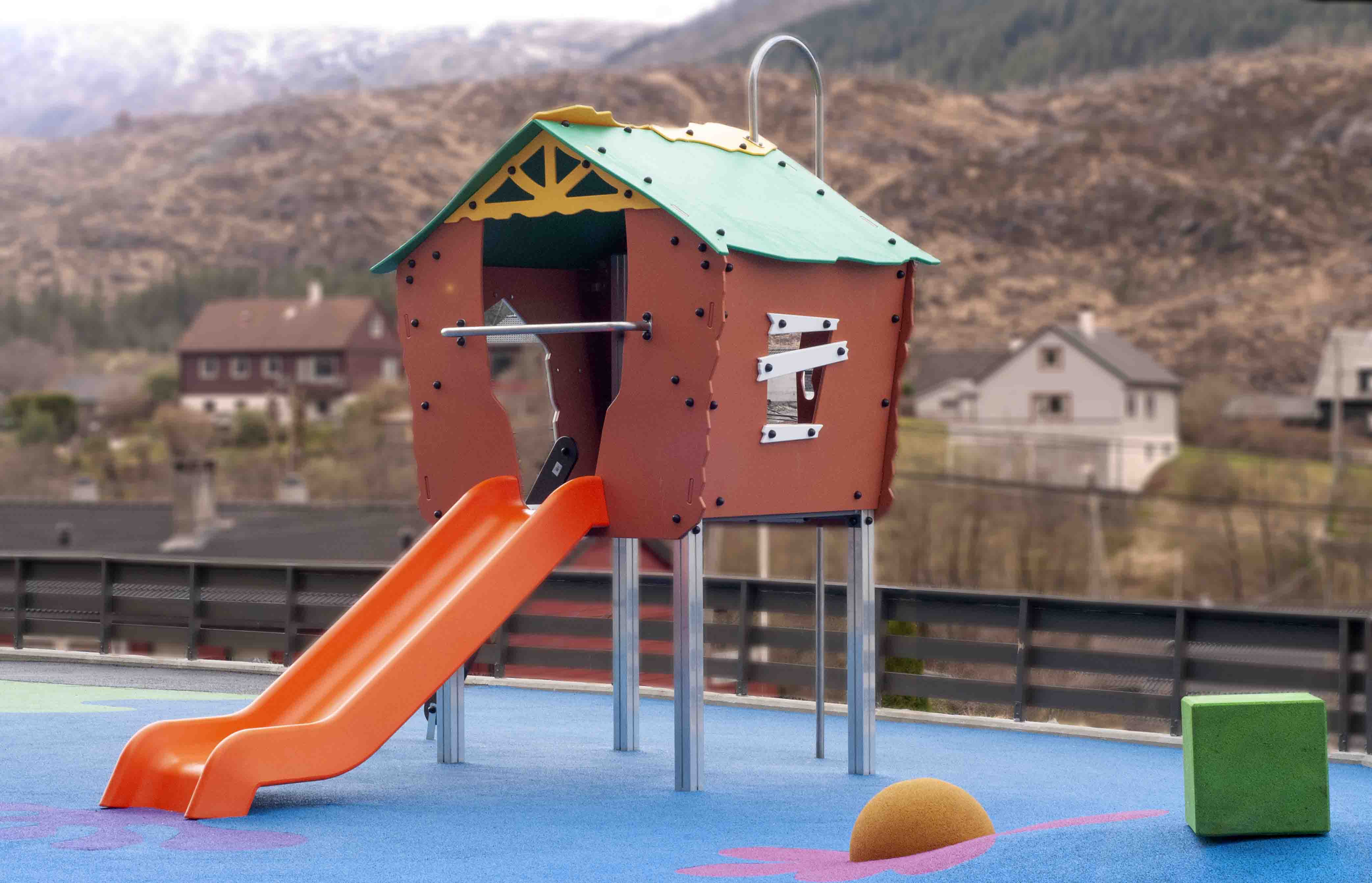 Abuda lekehusene leveres i flere størrelser og er en suksess på lekeplassen. Bygget i gjennomfarget HDPE. Et vedlikeholdsfritt, lett og solid materiale.