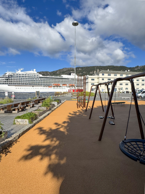 Bergen Kommune tester fallunderlaget Corkeen på et mindre lekeområde på Nordnes.