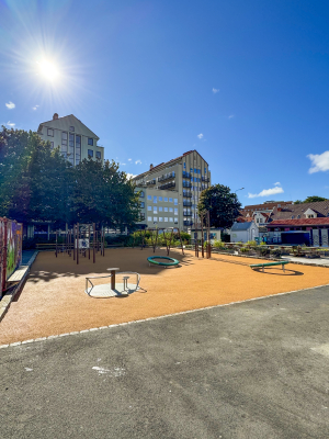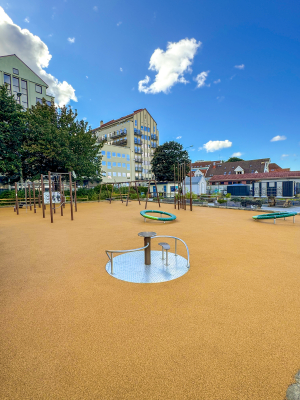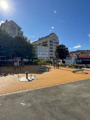 Frydenbø lekeplass på Laksevåg er oppgradert med nye lekeapparater, fallunderlag og utemøbler