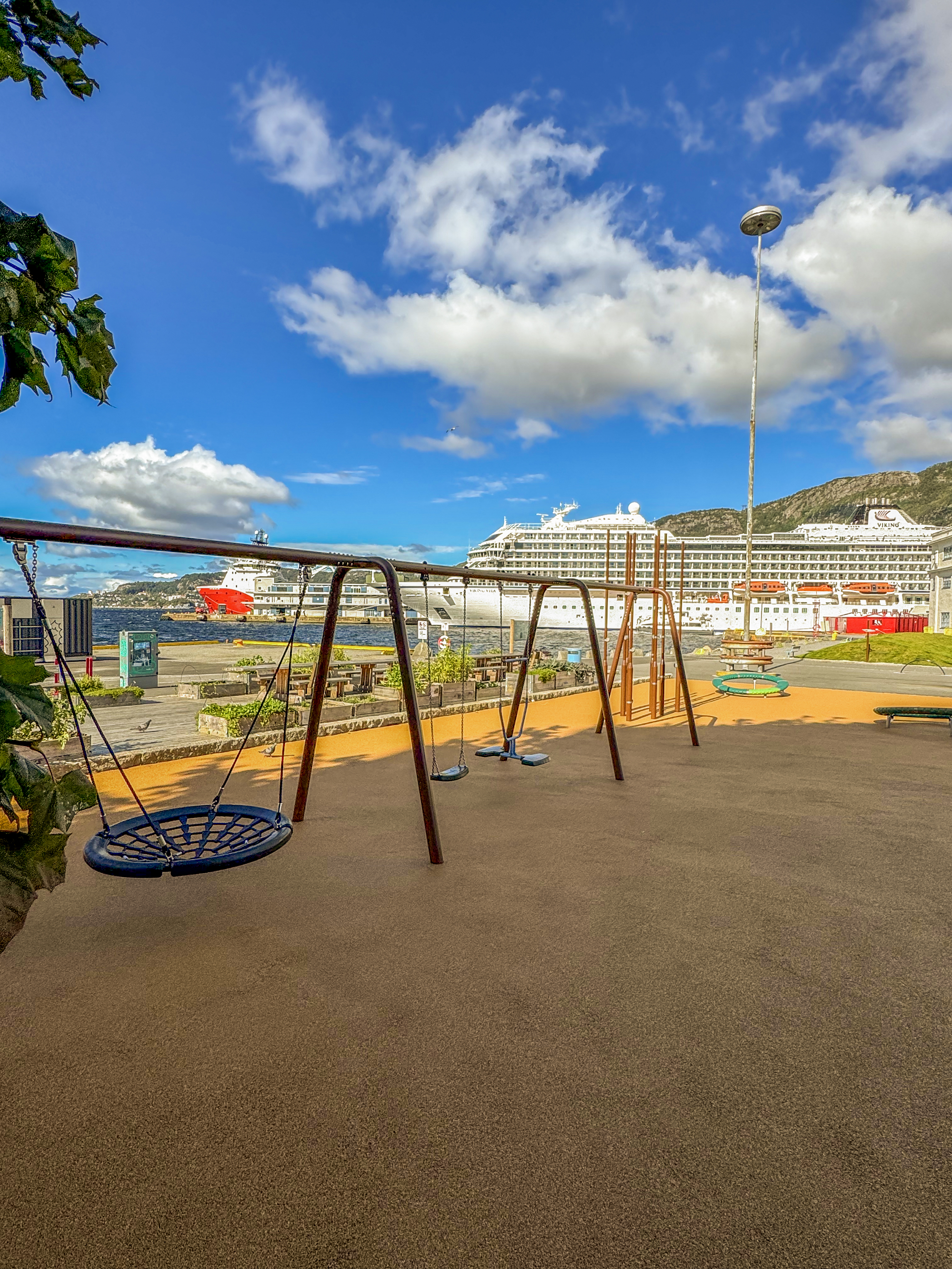 Parken i Kirkebukten på Laksevåg har Corkeen på et av lekeområdene.